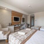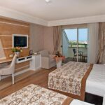 Стильные номера курортного спа-отеля Crystal Luxury Sunset оформлены в теплых тонах. На полу постелен ламинат. В числе удобств балкон, кондиционер и телевизор с плоским экраном. За дополнительную плату осуществляется доставка еды и напитков в номер по меню дня.
