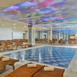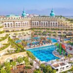 Курортный спа-отель Crystal Luxury Sunset расположен рядом с морем. К услугам гостей собственный песчаный пляж длиной 250 метров, открытые бассейны, 11 водных горок и спа-центр. Отель отличается уникальной архитектурой и работает по системе «все включено», а его название символизирует кристальную чистоту воды в Средиземном море.